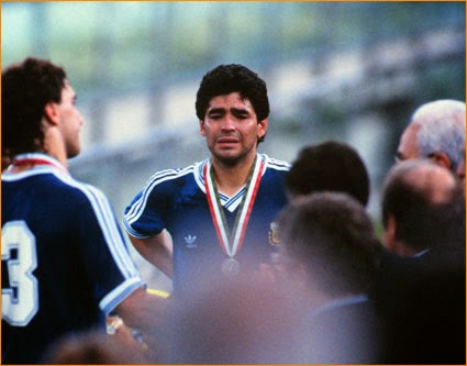 Ο Ντιέγκο Μαραντόνα ήταν πάντα μια αμφιλεγόμενη προσωπικότητα. Εγωιστής, υπερβολικός, οξύθυμος, απρόβλεπτος. Μπορεί μέχρι εκείνο το βράδυ του τελικού με την Γερμανία να έδειχνε άφθαρτος, είμαι σίγουρος όμως ότι μαζί του έκλαψε όλος ο λαός της Αργεντινής. Έχουμε δει πολλούς ποδοσφαιριστές να κλαίνε και ο πρώτος πους μας έρχεται κατευθείαν στο μυαλό, είναι ο Κριστιάνο Ρονάλντο μετά τον τελικό με την Ελλάδα το 2004. Διάσημο ήταν και το κλάμα του Πελέ μετά τον τελικό με τη Σουηδία το 1958. Γιατί επέλεξα τον Μαραντόνα; Γιατί οι προαναφερθέντες ήταν ακόμα παιδιά τότε, στο ξεκίνημα της καριέρας τους και προφανώς πιο ευάλωτοι. Ο Μαραντόνα ήταν ένας άντρας 30 ετών με μια τεράστια διαδρομή πίσω του και στο κλάμα του για μένα, συνοψίζεται όλη του η αγάπη για το ποδόσφαιρο. Από τις παράγκες του Μπουένος Άιρες, μέχρι την καταξίωση του στη Νάπολι.